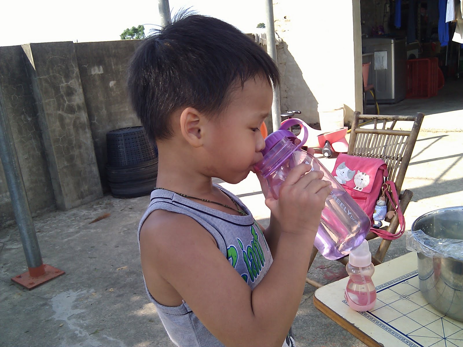 今天從家裡出門時才24度,還下雨,回到娘家竟然34度,還大太陽,只好跟親戚借衣服,不然出門時可是長褲長袖,會中暑的!