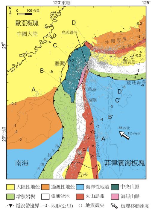『雖然菲律賓海板塊是從花蓮隱沒入歐亞大陸板塊,